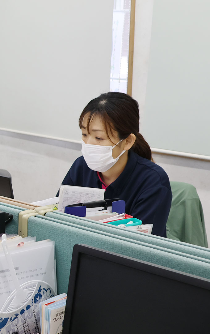 午後→利用者宅への訪問、事務作業、毎週月曜日は会議の実施